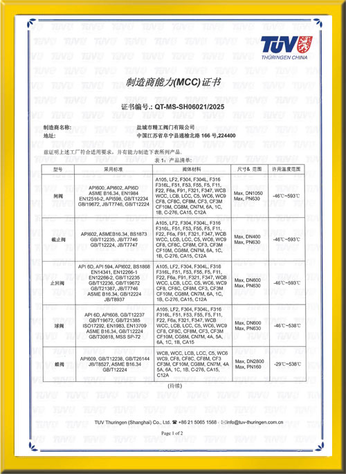MCC制造商能力評估證書