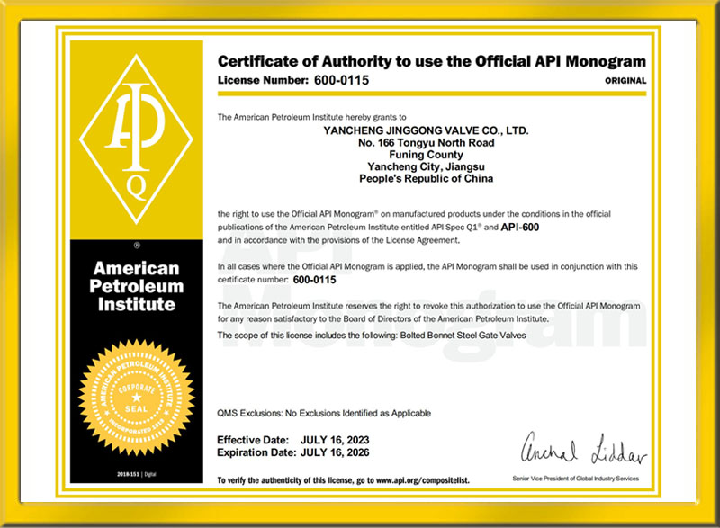 美國石油協會API認證書-602